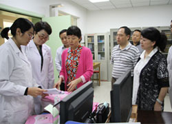 2019年5月22日省卫健委党组成员、副主任、省保健局局长赵岚一行深入我院调研指工作,省卫健委妇幼健康处处长温春梅、人口监测与家庭发展处处长刘建国,市卫健委主任王生辉、市卫健委分管领导张新文,市干部保健处主任张虎成等相关科室负责同志及院领导陪同调研。