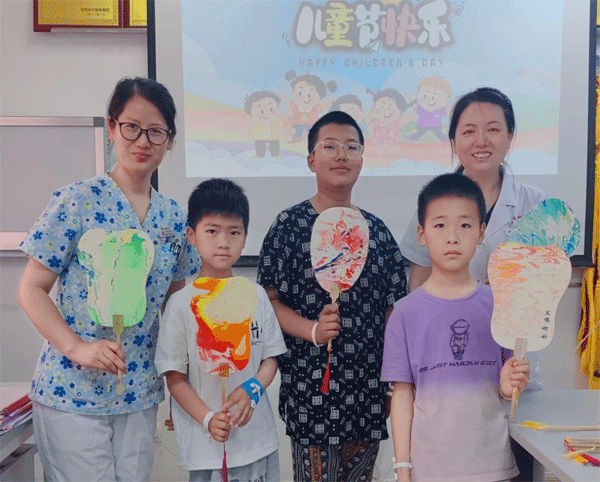 随后,医护人员还精心组织小朋友们开展了制作漆扇、投沙包等系列趣味小游戏。小朋友们积极参与,欢声笑语充满了整个活动现场。
