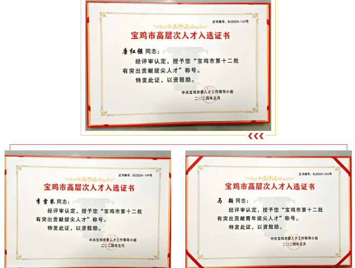 近日,中共宝鸡市委人才工作领导小组印发了《关于命名宝鸡市第十二批有突出贡献拔尖人才和青年拔尖人才的决定》(宝人才发〔2024〕1号),宝鸡市妇幼保健院党委副书记、院长、主任医师雷静,妇一科主任、主任医师黄玮,产科主任、主任医师宋文侠,围产保健门诊主任、主任医师赵雪卉,重症新生儿科主任、主任医师罗玲英,儿童呼吸科主任、主任医师任晓红,儿童神经内科与康复科主任、主任医师胡春维,超声医学科主任、主任医师王薇,儿童消化营养科主任、副主任医师唐红强,儿童保健科主任、副主任医师李雪琴荣获“宝鸡市第十二批有突出贡献拔尖人才”称号。产三科副主任、副主任医师马颖荣获“宝鸡市第十二批有突出贡献青年拔尖人才”称号。