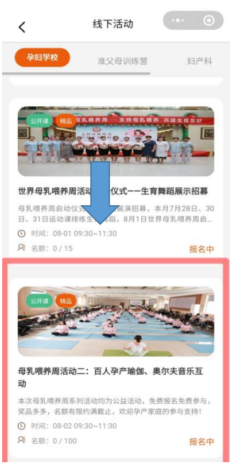 1.登录微信公众号“宝鸡市妇幼保健院智慧服务平台”→点击“智慧产科” → 点击“孕妇学校”(打开孕育医+小程序)→找到“线下活动”专栏并进入→找到“世界母乳喂养周活动二”点击报名,完善信息登记即可完成。