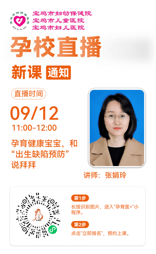 预防出生缺陷日是每年的9月12日。2025年预防出生缺陷日的主题是“关注孕期营养,孕育健康未来”。为增强育龄人群和孕产妇掌握营养健康及出生缺陷防治知识,践行健康生活方式,科学孕育健康新生命。宝鸡市妇幼保健院将举办预防出生缺陷日系列公益活动。