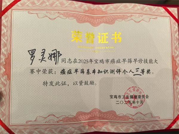 10月14日,由宝鸡市卫生健康委主办的“2025年宝鸡市癌症早筛早诊技能大赛”圆满落幕。宝鸡市妇幼保健院参赛队表现亮眼,荣获大赛团体三等奖,其中两名参赛选手分别荣获癌症防治科普宣教能力考核个人一等奖、癌症早筛基本知识测评个人三等奖。