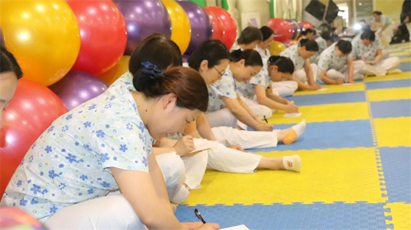 活动在欢快的“花儿朵朵开”游戏中拉开序幕。在心理医师的引导下,平日里忙碌于临床一线的护理工作者暂时放下手头工作,全身心投入到游戏环节。现场欢声笑语此起彼伏,大家在游戏中学习、互动,尽情享受快乐时光,对自身心理健康也有了更为深刻的认知与感悟,在轻松愉悦的氛围里,有效释放了工作压力,守护内心的“晴朗”。