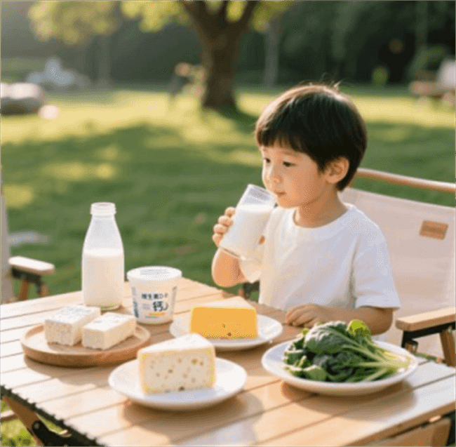 5、钙与锌:奶制品、豆类、深绿叶菜(钙);瘦肉、贝壳类、坚果(锌),促进骨骼发育和免疫力。