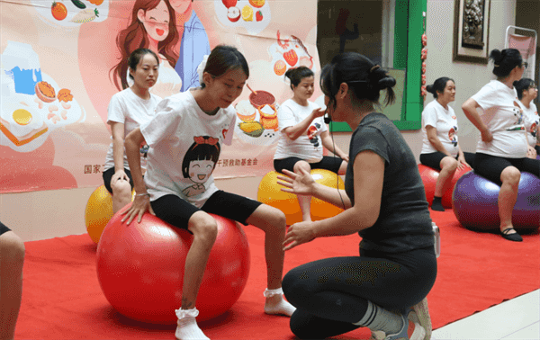 在精彩的互动环节,孕妇学校孕产运动指导师带领孕妈妈们表演了一场别开生面的分娩球操。孕妈妈们跟随节奏,轻盈地转动、伸展,展示了孕期健康生活方式,传递出积极乐观的孕育态度。随后的奥尔夫音乐亲子胎教体验课程更是将活动推向高潮,在《布谷鸟》《小美满》《绿岛小夜曲》等悠扬音乐中,国际胎教指导师引导孕妈妈们通过手势律动、乐器敲击与腹中宝宝“实现互动”,现场洋溢着温馨与幸福,充满爱与期待。